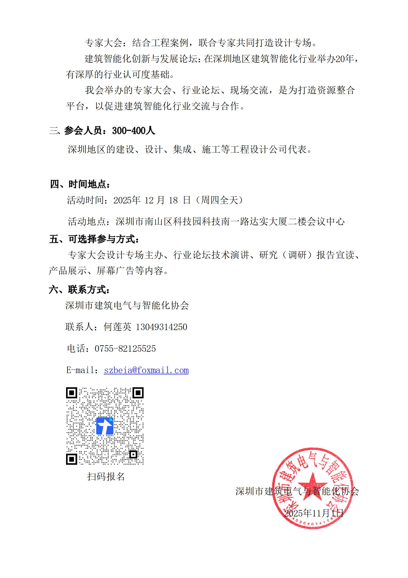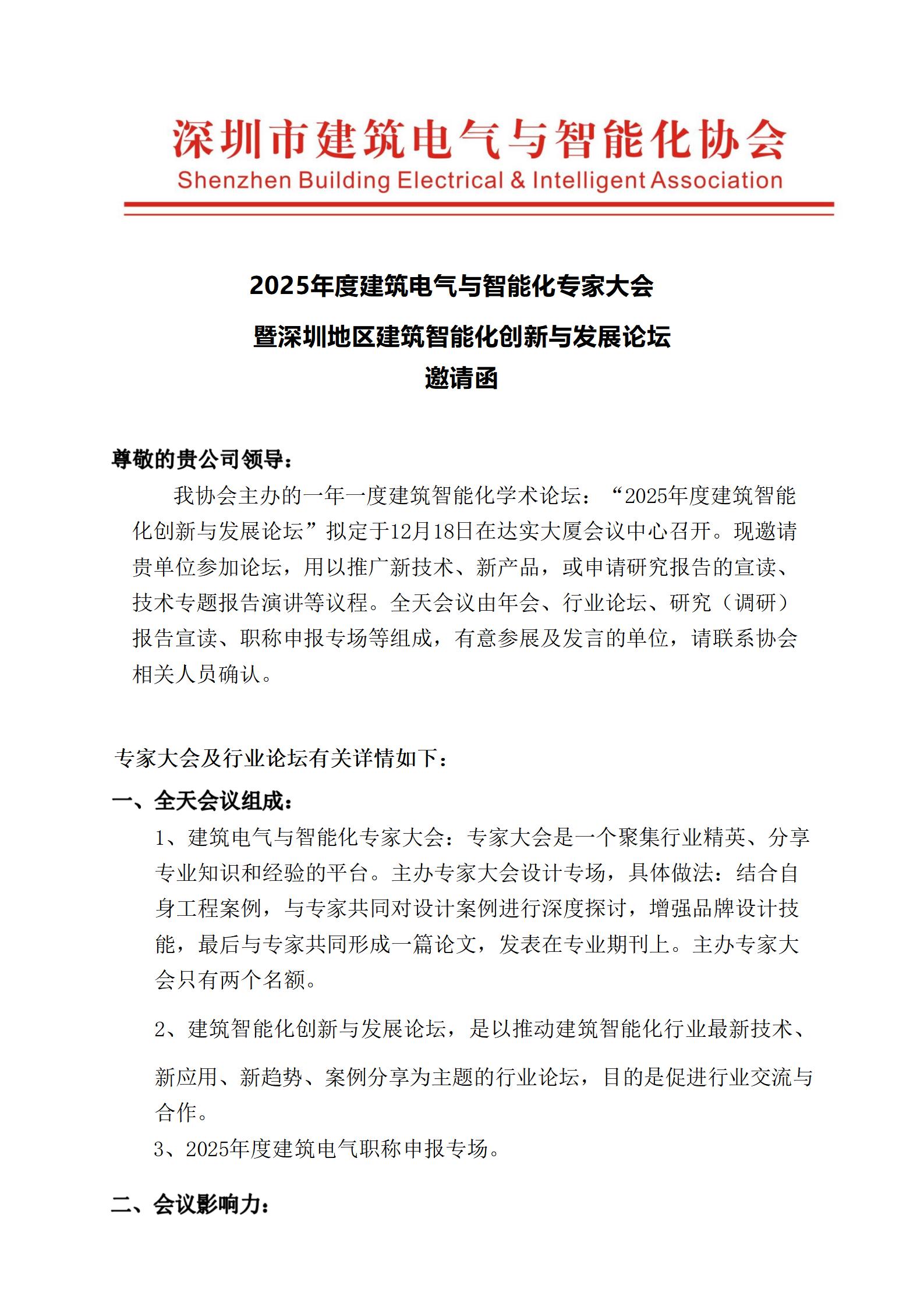 【征集通知】2025年度建筑电气与智能化专家大会暨深圳地区建筑智能化创新与发展论坛